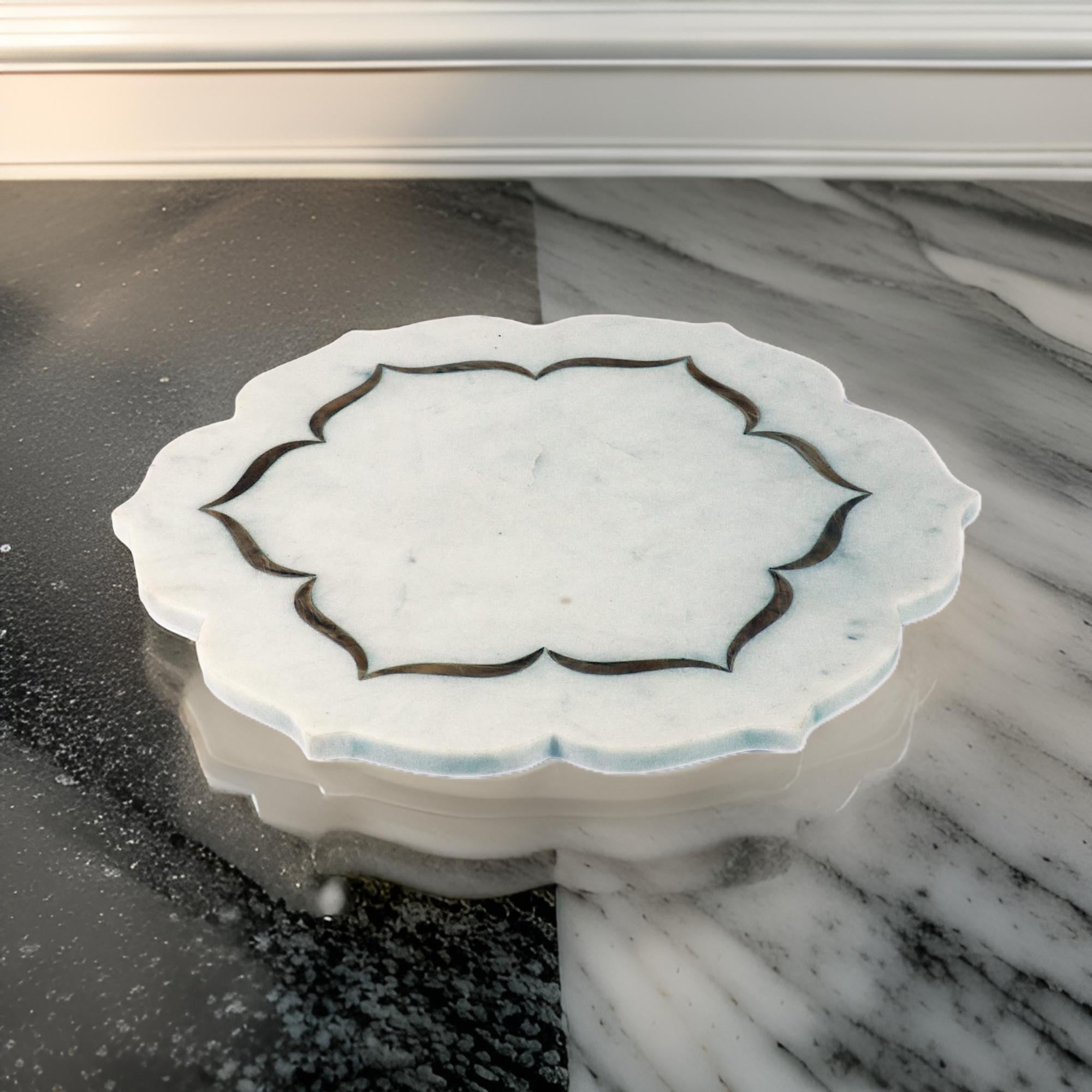 Add a touch of sophistication to your home with this handcrafted white marble decorative tray, featuring an exquisite lotus-inspired shape with gold inlay detailing. Designed to blend luxury with minimalism, this unique piece is perfect for serving, displaying jewelry, or enhancing your coffee table décor.
