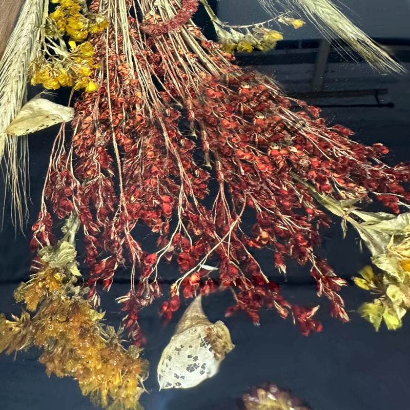Epoxy Resin: Black high-gloss channels featuring real preserved wildflowers and botanicals