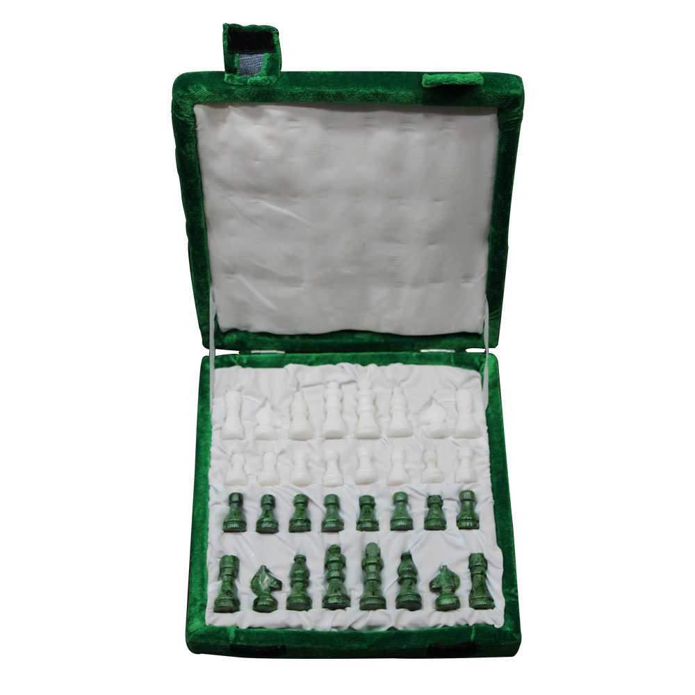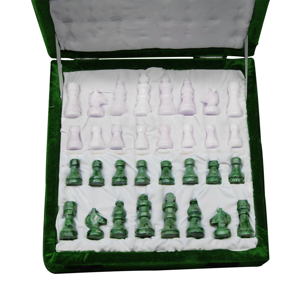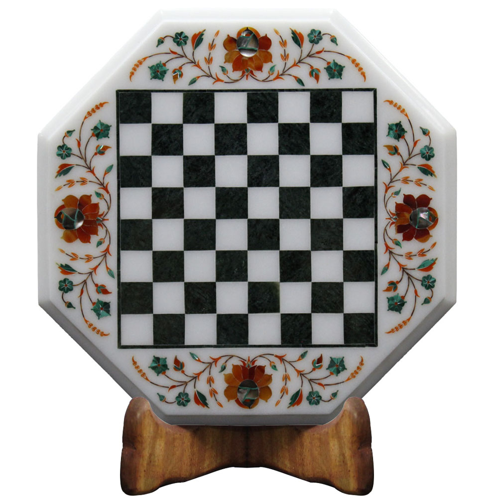 Handcrafted Oct-Angle White Marble Inlay Chess Board With Wooden Base Stand