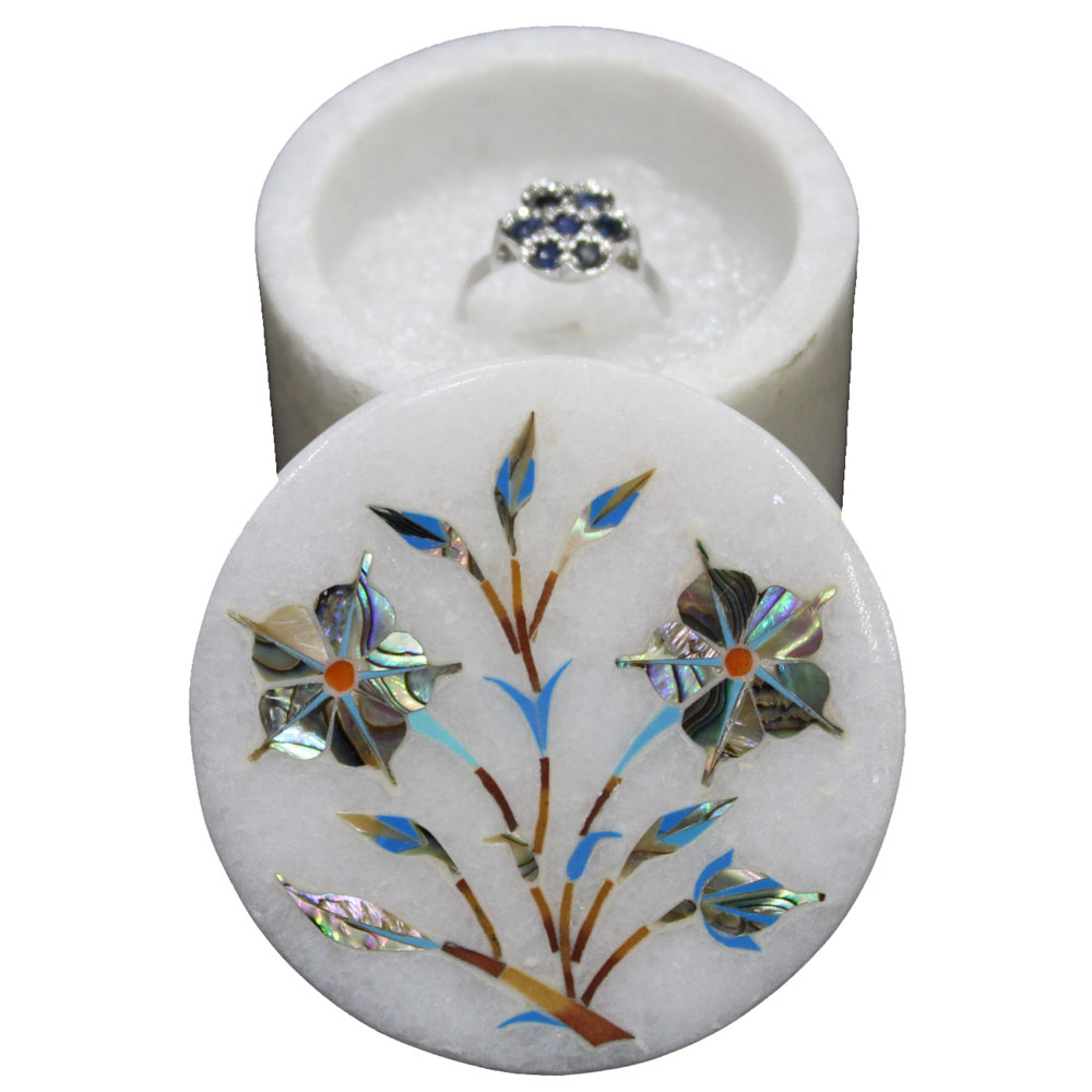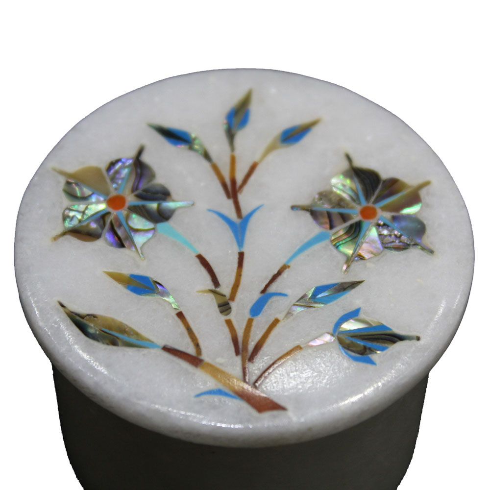 Elevate your decor with this exquisite Handmade Natural Paua Shell Inlaid White Marble Trinket Box, a stunning blend of natural elegance and craftsmanship. Made from premium-quality white marble, the box features a sleek and polished surface, providing a luxurious feel and timeless aesthetic.